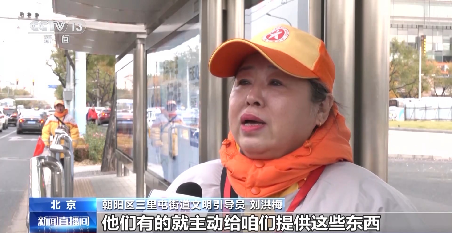 朝阳区三里屯街道文明引导员 刘洪梅:每个车站、每个站台,只要有这种凳子的,我们全都给它做好了,居委会的阿姨们还有各个商户,看到咱们做这个以后,他们有的就主动给咱们提供这些东西,给我们送过来,让我们去给它绑好。